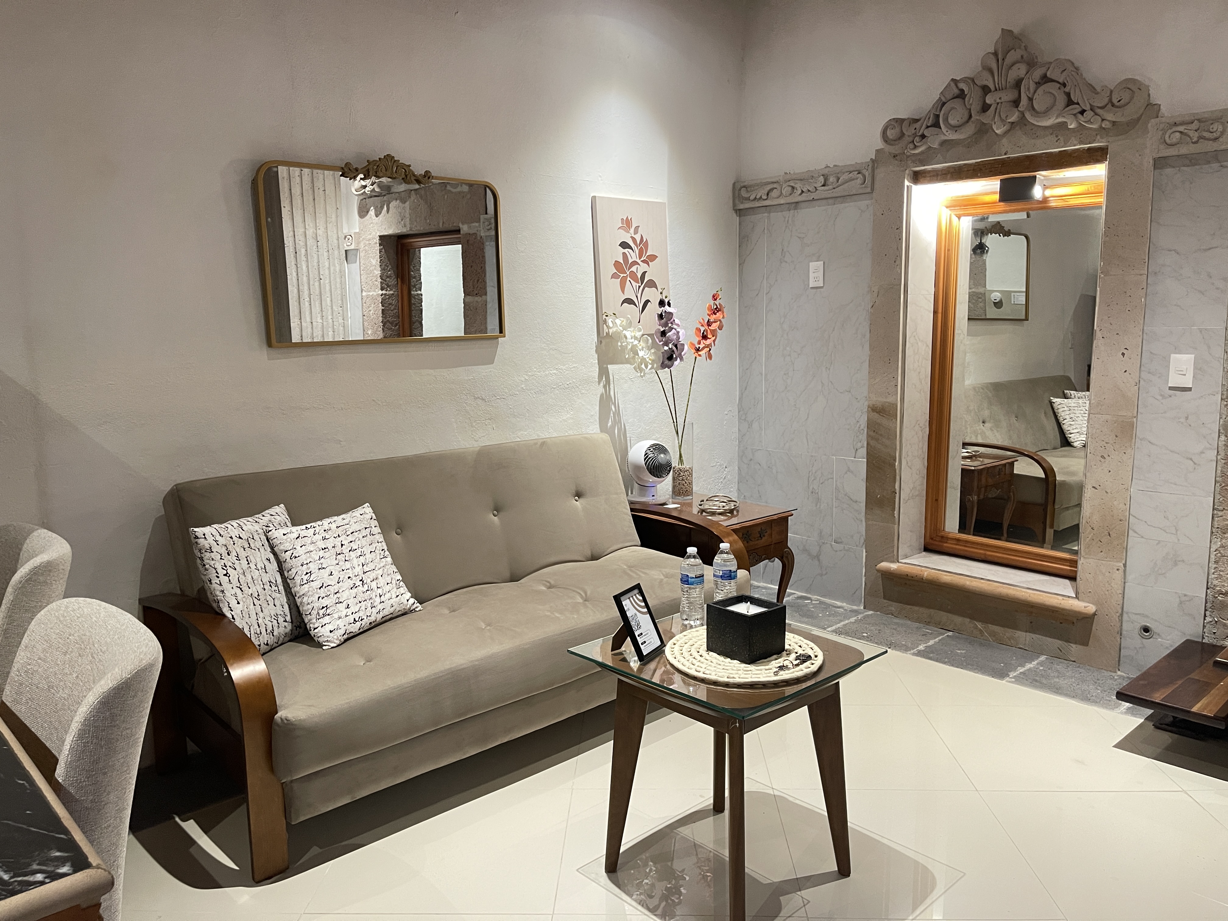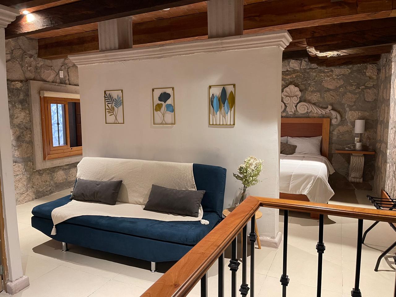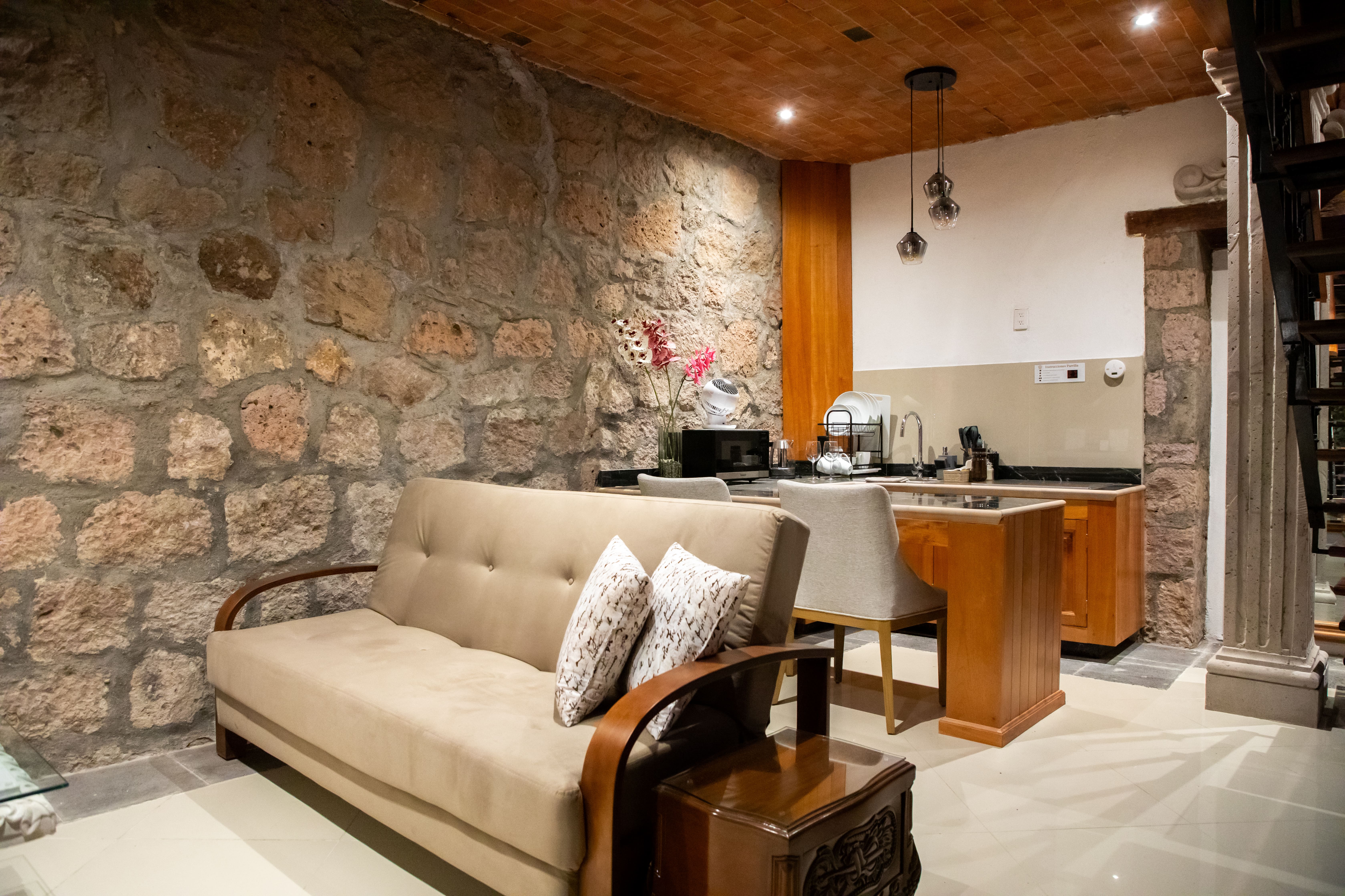 The most spacious and versatile accommodation at Casa Serdán. Designed to host up to 4 guests, this elegant loft-style suite blends the charm of a colonial home with the comfort of modern living—perfect for relaxing or exploring Morelia.
