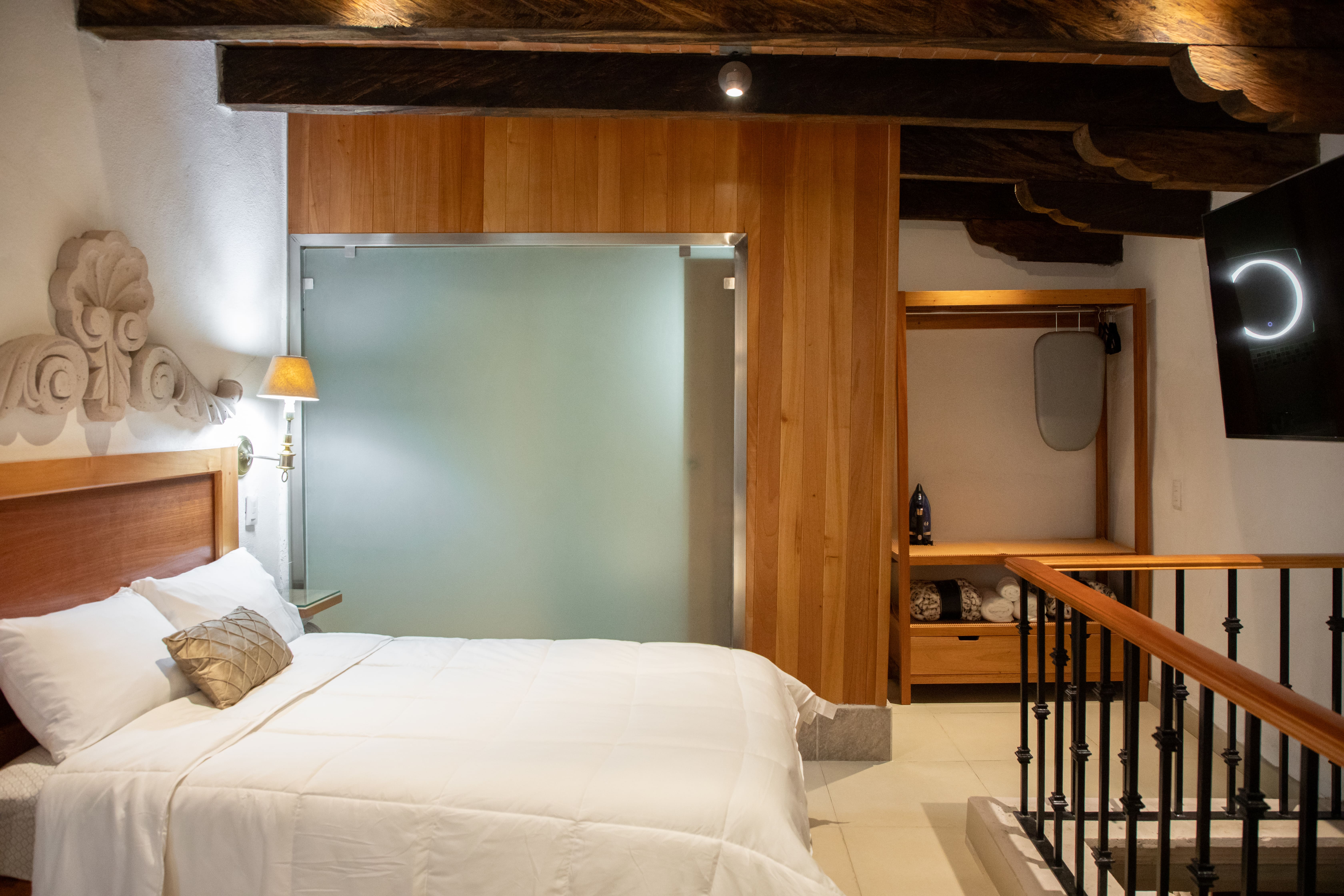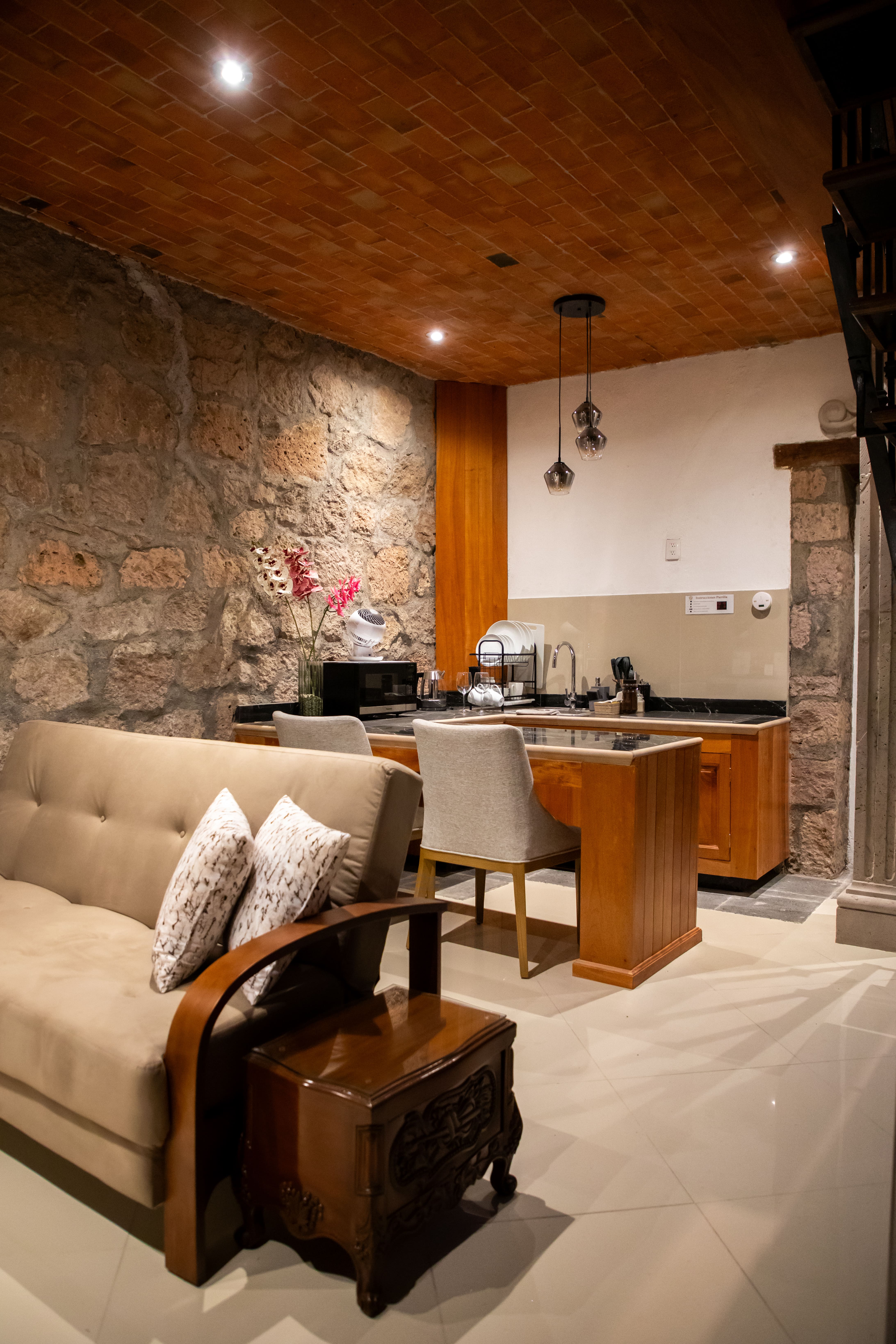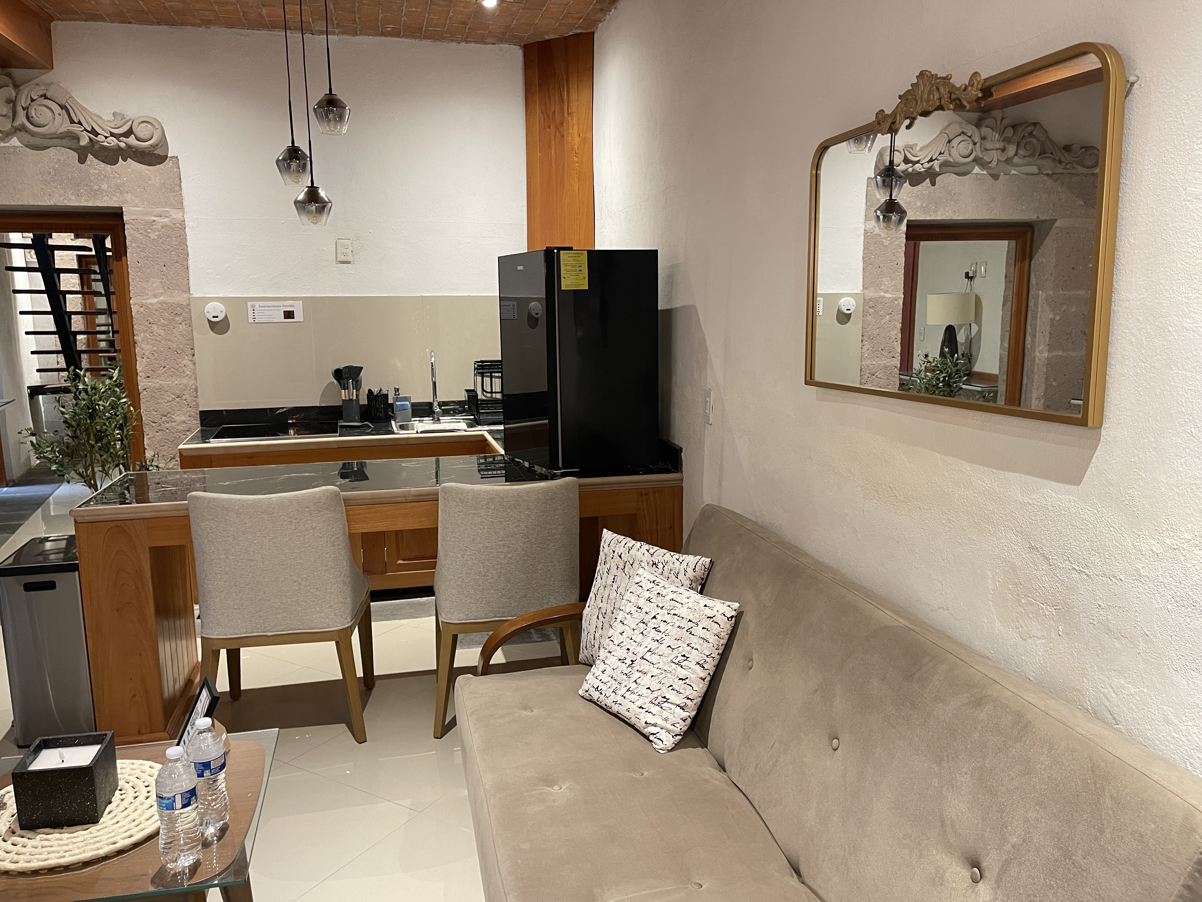 The most spacious and versatile accommodation at Casa Serdán. Designed to host up to 4 guests, this elegant loft-style suite blends the charm of a colonial home with the comfort of modern living—perfect for relaxing or exploring Morelia.