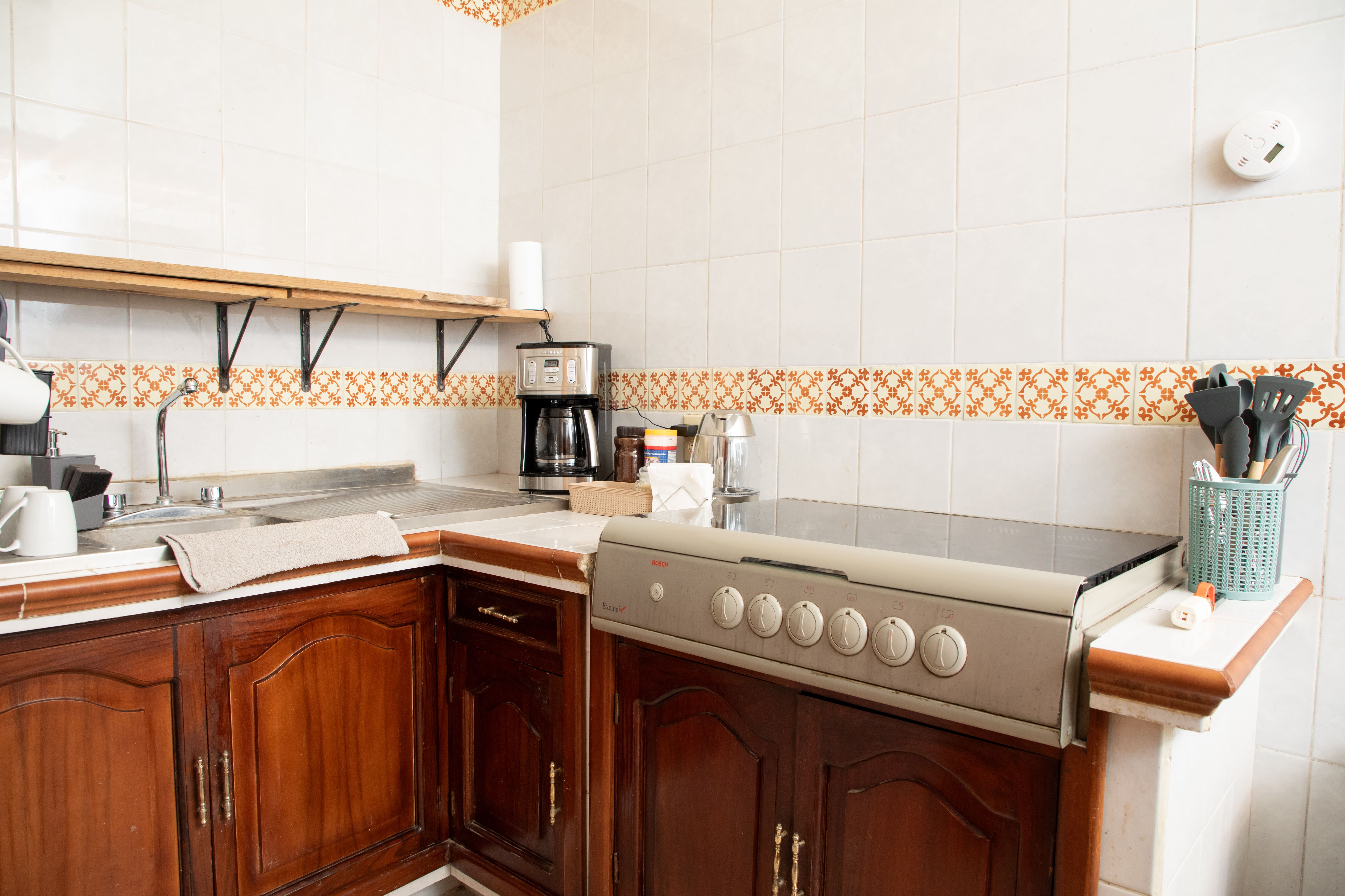 It features two double beds, a lounge area, fully equipped kitchen, and private bathroom—all within a warm, functional, and character-filled space. High ceilings and unique architectural details make it ideal for families, friends, or extended stays.