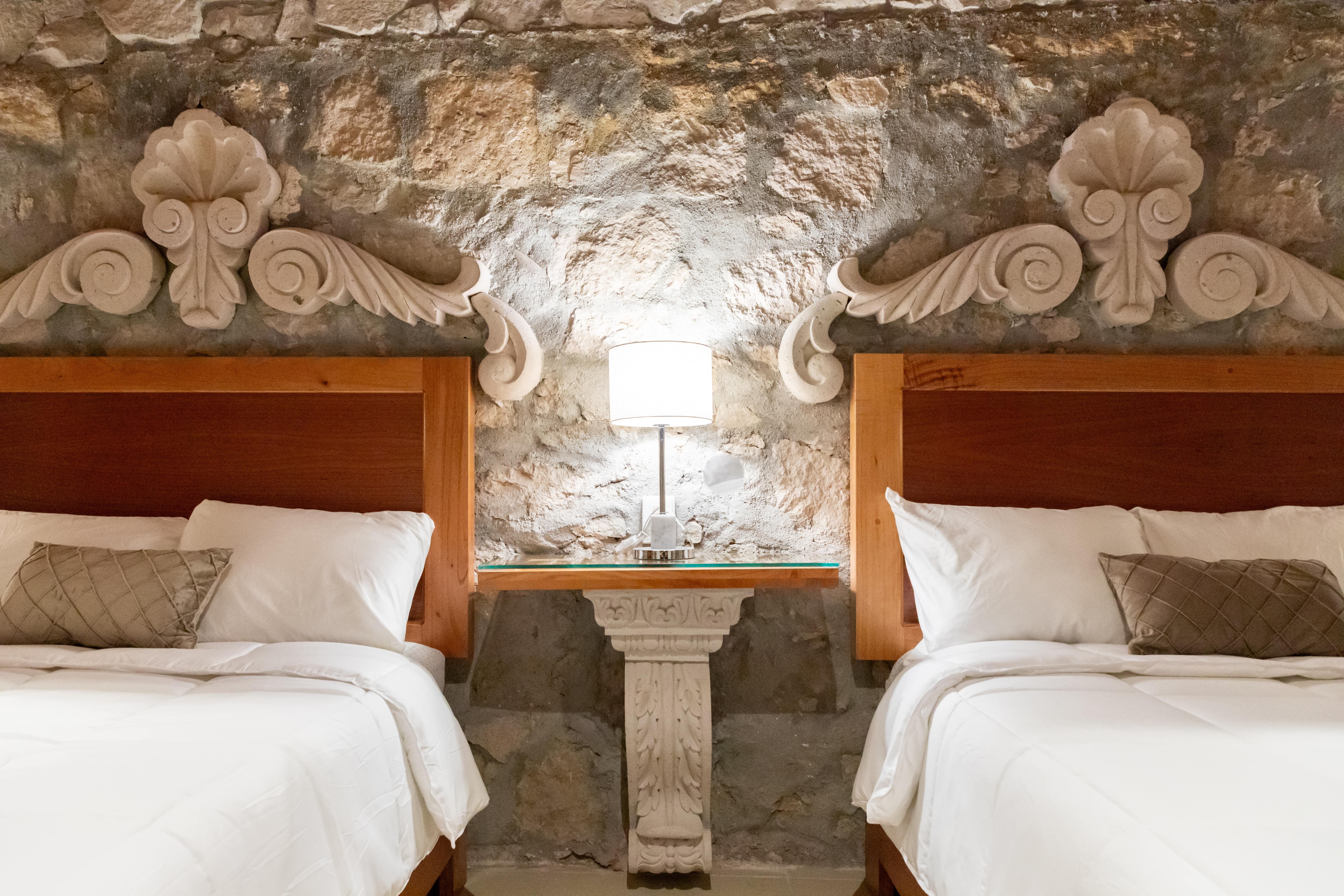 It features two double beds and a private bathroom, providing the privacy and convenience needed for a relaxing stay. The suite blends colonial character with modern touches to ensure a pleasant and memorable experience.