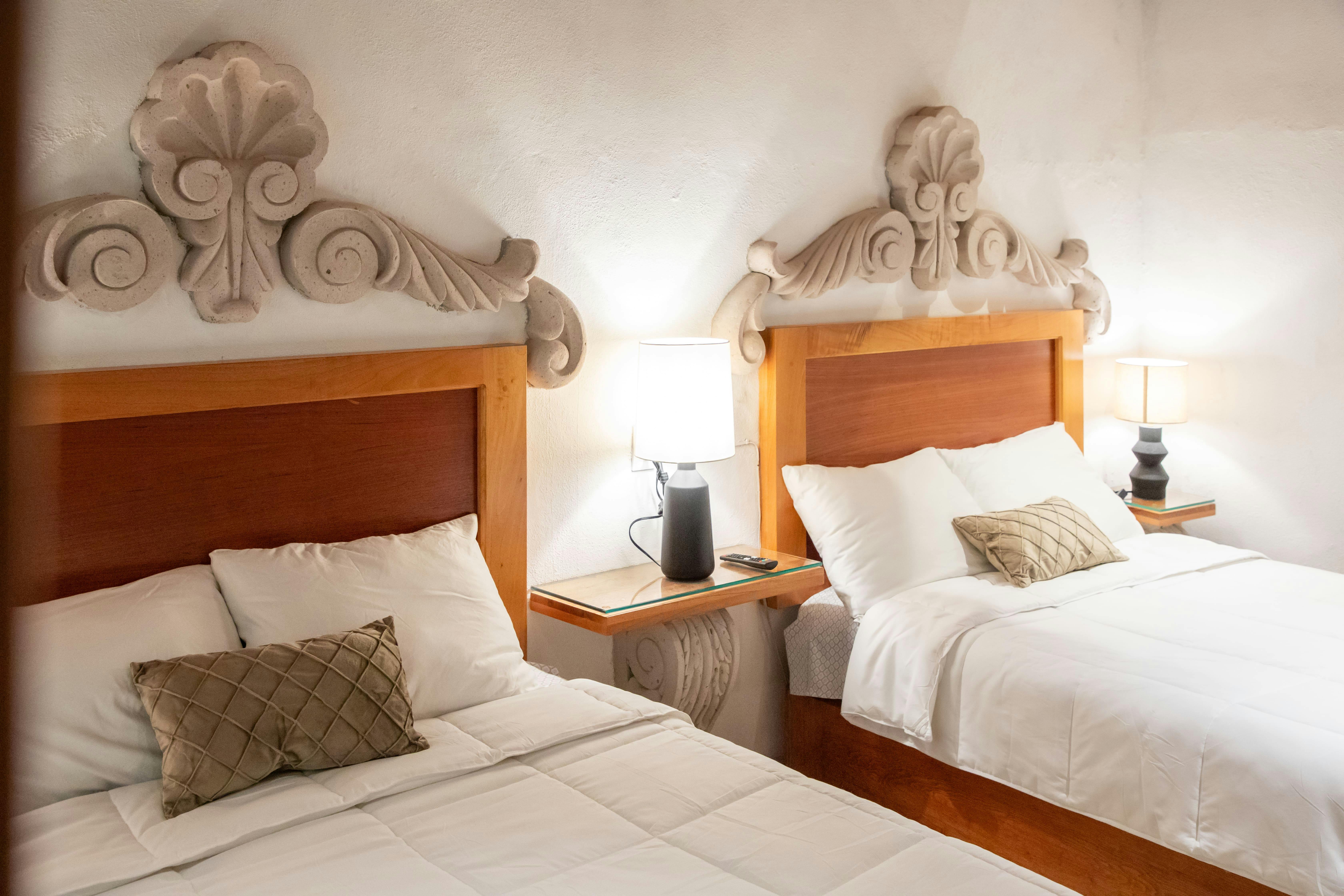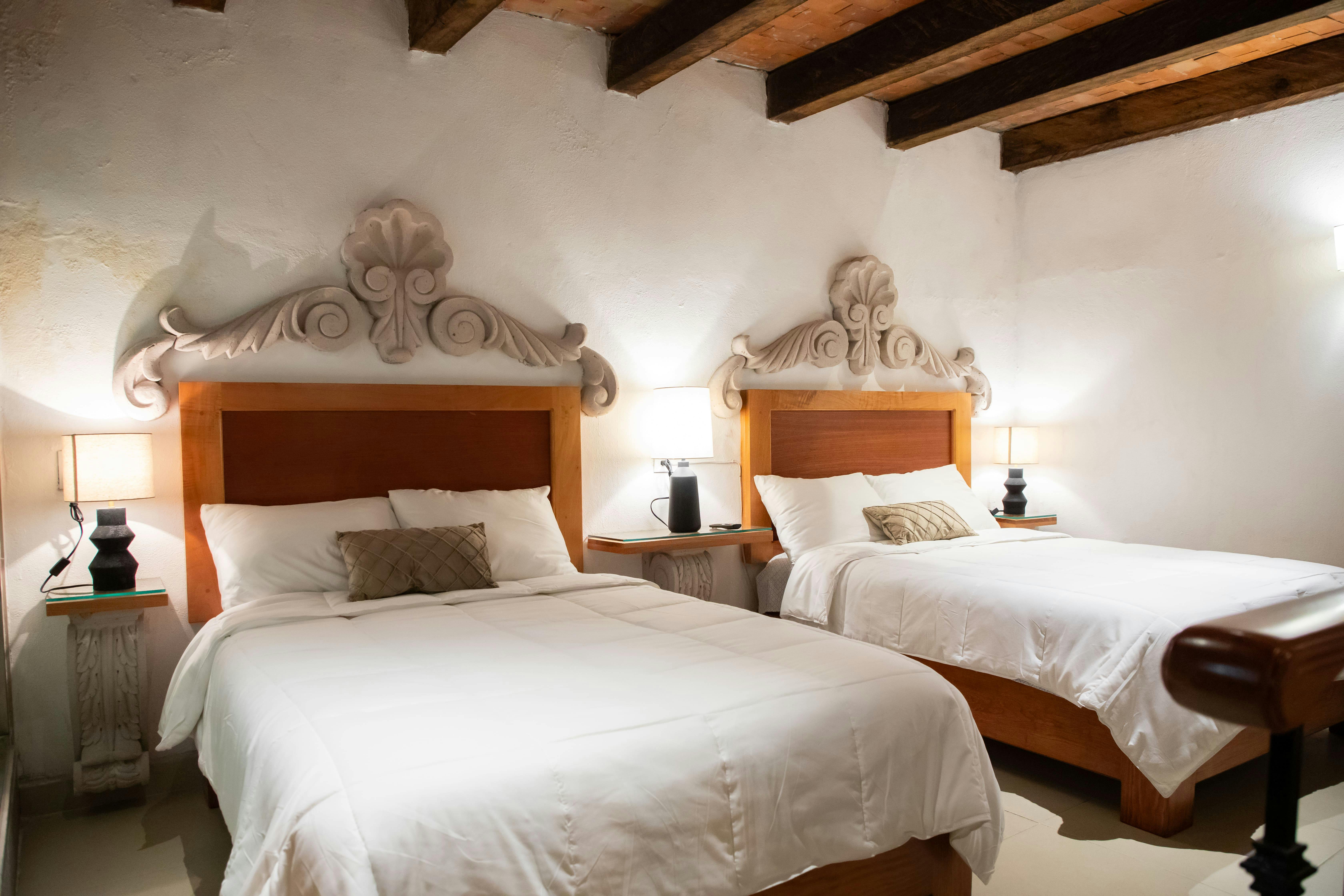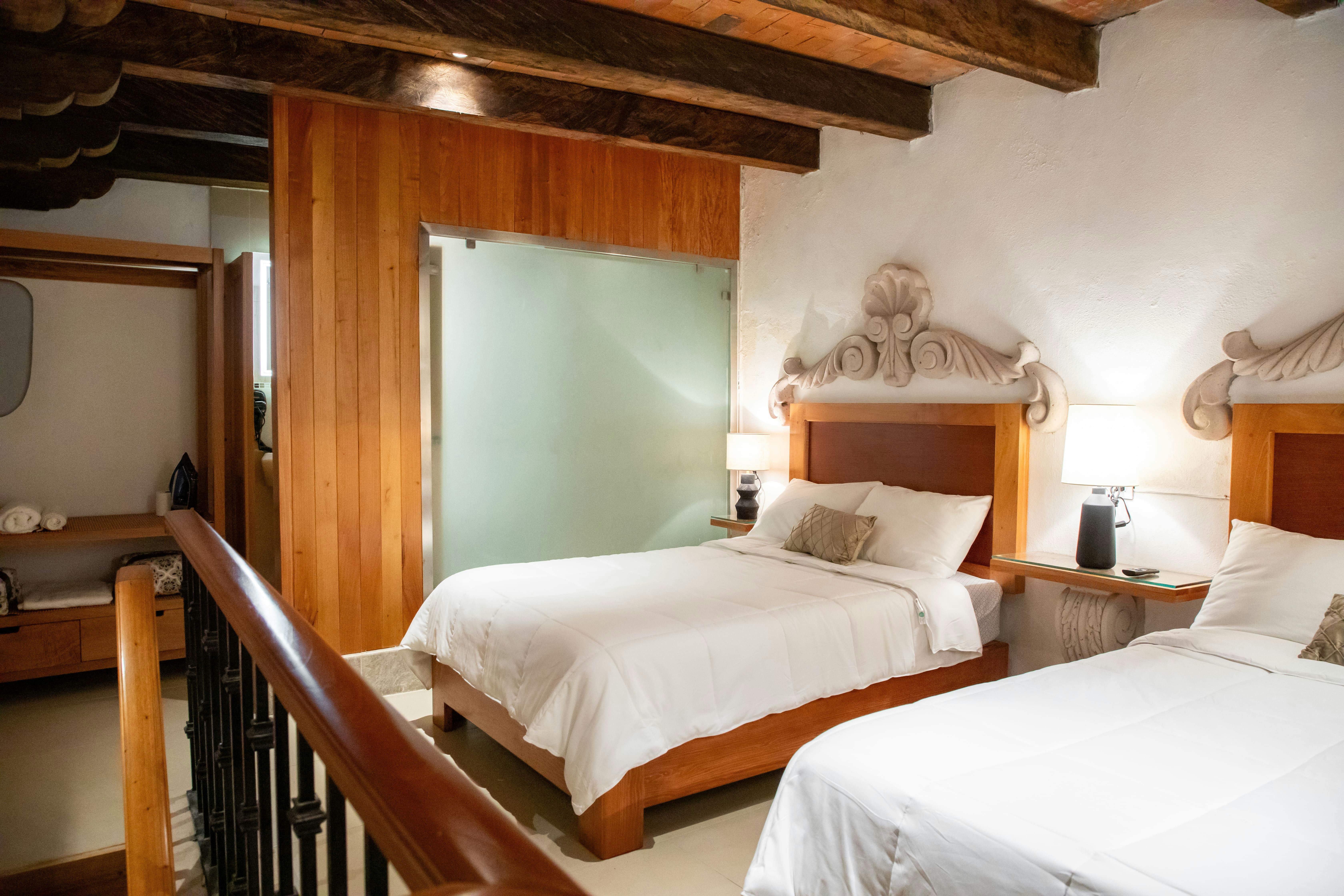 It features two double beds and a private bathroom, providing the privacy and convenience needed for a relaxing stay. The suite blends colonial character with modern touches to ensure a pleasant and memorable experience.